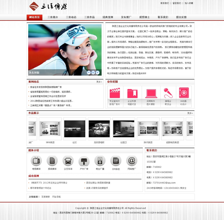 陕西三佳企业文化传播有限责任公司是一家由政府相关部门核准的的专业传媒公司,致力于企事业单位提供宣传方案。 这里汇集了一批来自商业、策略、制作执行、媒介推广前沿的精英,我们专业与激情兼备,始终以市场为核心,视策略为关键,深入企业自身和行业内部,提供从市场调研、策略创意到拍摄制作,推广发布等一条龙的全程服务。 凭借对媒体行业的独到理解和强大的执行能力,赢得高端优质客户的信赖。 我们拥有前瞻性的管理层和高效的策略、执行团队,包括创意、导演、策划文案、摄像师、剪辑师、特效师、3D动画师和媒体发布平台如陕西电视台、西安电视台、华商报、户外广告牌等。我们在多年的广告行业中积累了丰富的实战经验,凭借对广告行业的激情、对市场的洞察力、务实的制作、发布流程,协助客户总结提炼企业的优秀理念,为客户提供非模板式的、贴近市场需求的、富于影响力和销售力的宣传方案,助您决胜未来!