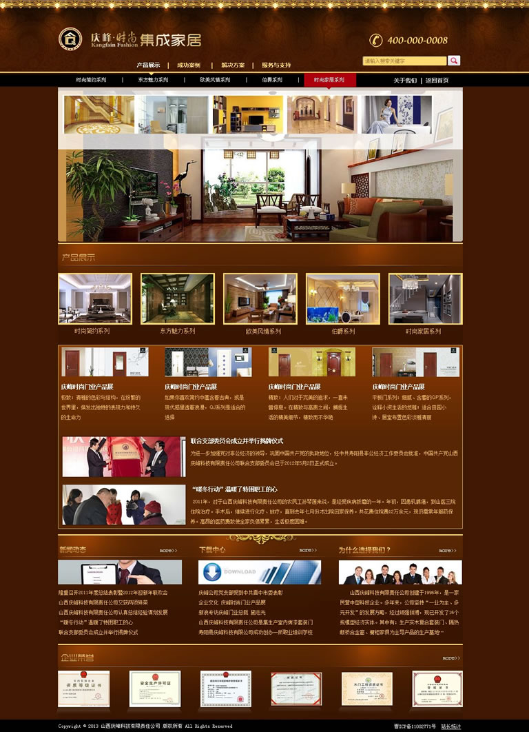 山西庆峰科技公司成立伊始就以坚持提供绿色环保产品为准则,以质量把控为命脉的发展遵旨。产品自投放市场以来得到消费者和市场的认可;公司2007年3月通过ISO9001质量管理体系和ISO14001环境管理体系认证,注册的“庆峰”商标被评定为“山西省著名商标”; 二○○九、二○一二年被山西省政府授予“山西省优秀企业”;省工商局授予山西省“守合同重信用企业”;中国木材流通协会木门专业委员会授予“常务理事单位”;“全国木门质量服务品牌30强企业”、“全国质量信誉AAA级企业”、2013年全国市场、工程木门企业产品质量售后服务“双承诺活动单位”等荣誉称号。