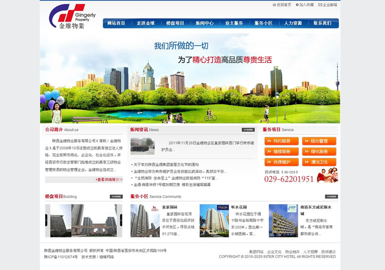 陕西金维物业服务有限公司(简称:金维物业)是于2008年10月注册成立的具有独立法人资格、完全按照市场化、企业化、社会化运作,并经西安市行政主管部门批准成立的具有三级物业管理资质的物业管理企业。金维物业自成立以来严抓管理,采用先进的管理模式和完善的管理制度,广泛吸纳业内精英,专为各类住宅小区和写字楼提供专业物业管理服务。