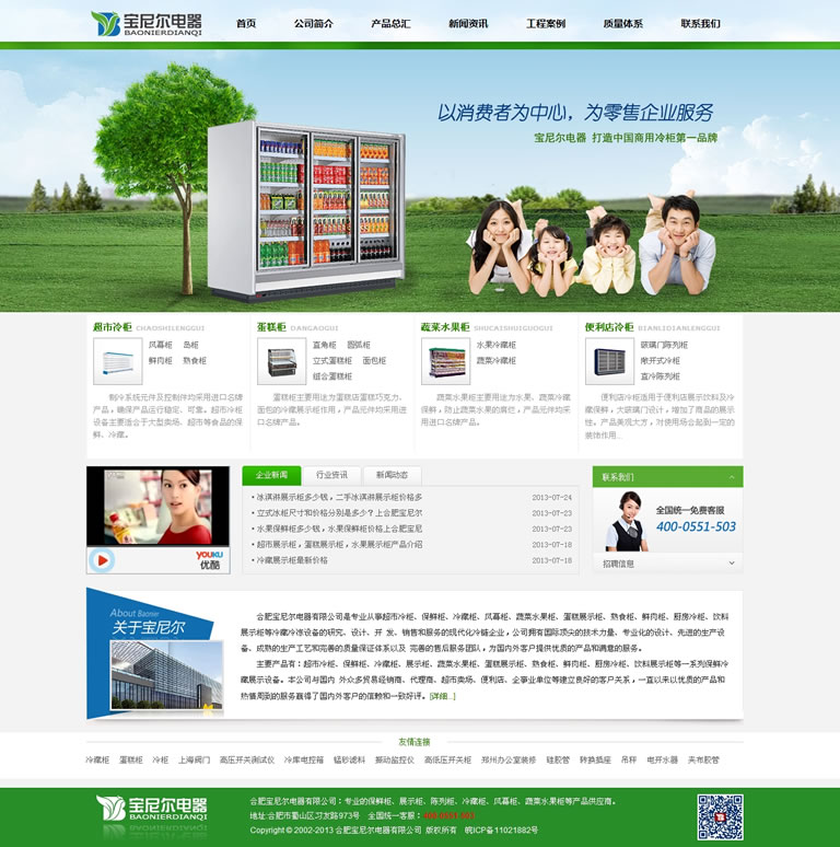 主要产品有:超市冷柜、保鲜柜、冷藏柜、展示柜、蔬菜水果柜、蛋糕展示柜、熟食柜、鲜肉柜、厨房冷柜、饮料展示柜等一系列保鲜冷藏展示设备。本公司与国内 外众多贸易经销商、代理商、超市卖场、便利店、企事业单位等建立良好的客户关系,一直以来以优质的产品和热情周到的服务赢得了国内外客户的信赖和一致好评。